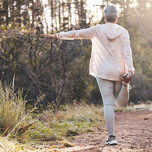 You might also benefit from dedicated balance training. Targeted exercises, like standing on one foot with your eyes closed, challenge your balance and proprioception (your body’s awareness of itself in space). Working on your balance each day throughout the fall will help you see improvements in your balance this winter.